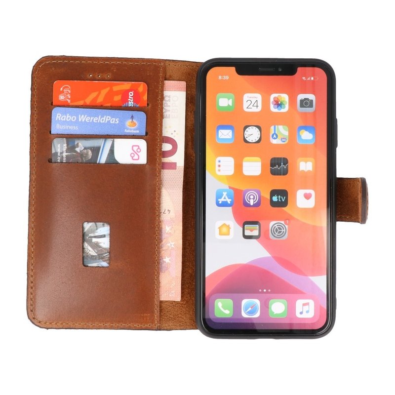 Het hoesje biedt ruimte voor twee pasjes en briefgeld. Zo kunt u altijd uw pasjes dicht bij u houden. Daarnaast zorgt de design van dit lederen hoesje ervoor dat u uw telefoon horizontaal kunt leggen om uw favoriete Youtube- en/of Netflix films te bekijken.