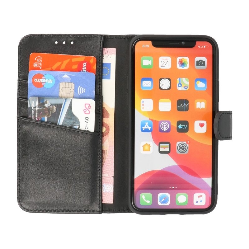 Het hoesje biedt ruimte voor drie pasjes en briefgeld. Zo kunt u altijd uw pasjes dicht bij u houden. Daarnaast zorgt de design van dit lederen hoesje ervoor dat u uw telefoon horizontaal kunt leggen om uw favoriete Youtube- en/of Netflix films te bekijken.