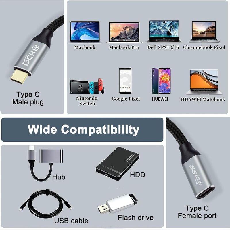 1.5ft USB C naar USB C-datakabel 3.1 Gen 2 ondersteunt snellere gegevensoverdracht tot 10 Gbps/s, bespaart veel tijd bij het overzetten van GB's aan mediabestanden tussen SSD-schijven of een snelle verbinding van een universeel dockingstation naar een computer.