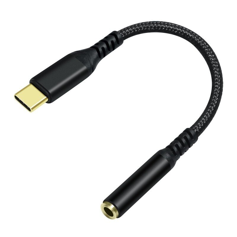• Zwarte 3,5 mm naar USB-C hoofdtelefoonadapter voor Android-smartphones is stevig gebouwd met een vergulde connector en een behuizing van gevlochten nylondraad voor duurzaam gebruik